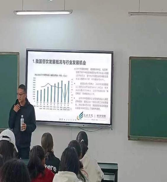 王京法老师首先向同学们介绍了我国餐饮业发展概况与行业发展机会。近年来中国餐饮业吸纳的就业人员在逐渐增加,餐饮企业一线人员的工资也在逐渐上涨,使同学们对餐饮业的发展有更多了解。