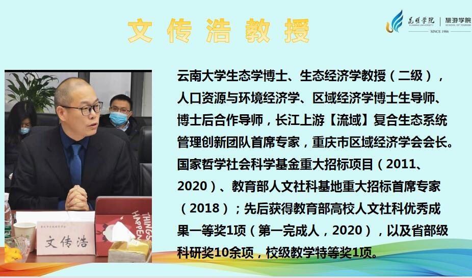 太阳成集团tyc122cc于2022年10月17日9:30-12:00召开2023年国家基金项目申报启动会,同时邀请长江上游复合生态系统管理创新团队首席专家文传浩教授作申报辅导首讲。2022年11月7 日,公司邀请长江上游复合生态系统管理创新团队成员陈震老师和张智勇老师作第二次辅导讲座。讲座由太阳成集团tyc122cc经理田芙蓉教授主持,公司高级职称和博士学历教师参加。