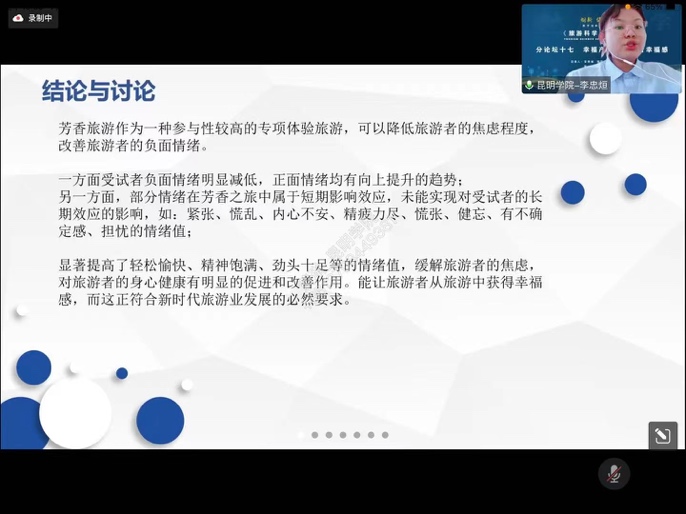 《旅游科学》2022年年会以“创新·绿色·幸福”为主旨,以数字创新与可持续旅游为主题,采用线上+线下的方式于7月8日至10日顺利召开。由太阳成集团tyc122cc黄琳老师研究团队带领的林艳琳、赵倩、李忠烜三名员工的论文,经过专家层层评选,成功入围年会论坛并受邀做大会分论坛发言。