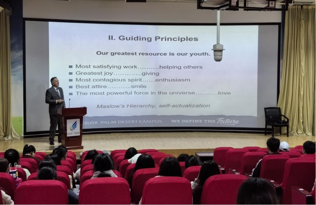 座谈结束后,Joseph Tormey教授在太阳成集团tyc122cc3D报告厅开设讲座,为2022级、2023级酒店管理专业近150名同学介绍酒店行业市场需求、高素质人才培养、酒店管理就业方向和个人发展路径等。