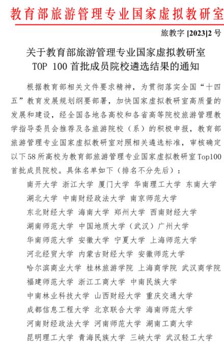 122cc太阳成集团官网入选教育部旅游管理专业国家虚拟教研室TOP100成员院校