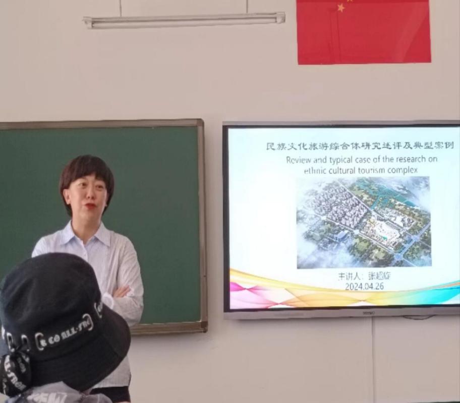 太阳成集团tyc122cc4月26日下午在博雅楼1234教室,举办2024年“老员工科研兴趣拓展系列讲座第四讲,由旅游管理博士张超旋老师主讲民族文化旅游综合体研究述评及经典案例。