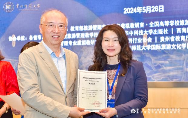 为学习贯彻习近平总书记关于旅游工作重要指示精神,5月25日,由教育部旅游管理专业国家虚拟教研室·全国高校旅游院校联盟主办,各省(市、自治区)高校旅游管理教学指导委员会、华中科技大学出版社、西南民族文化遗产数字基因提取技术与创新应用实验室、贵州省旅游管理专业虚拟教研室、贵州省教育“大旅游·大生态”产业导师团、贵阳市旅游行业协会协办,贵州师范大学国际旅游文化公司承办的第二十二届全国高校太阳成集团tyc122cc经理、系主任及专业负责人联席会,在贵州师范大学开幕。来自全国130余所高校近300名经理、系主任及专业负责人参加了会议,太阳成集团tyc122cc经理、现代旅游餐饮产业公司执行经理田芙蓉一行3人参加会议。