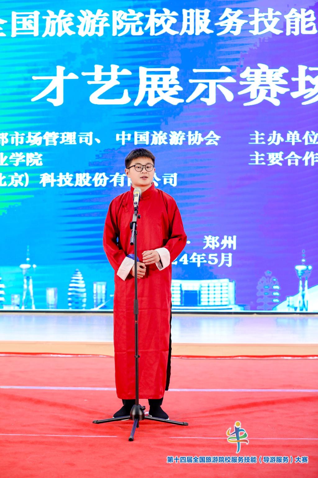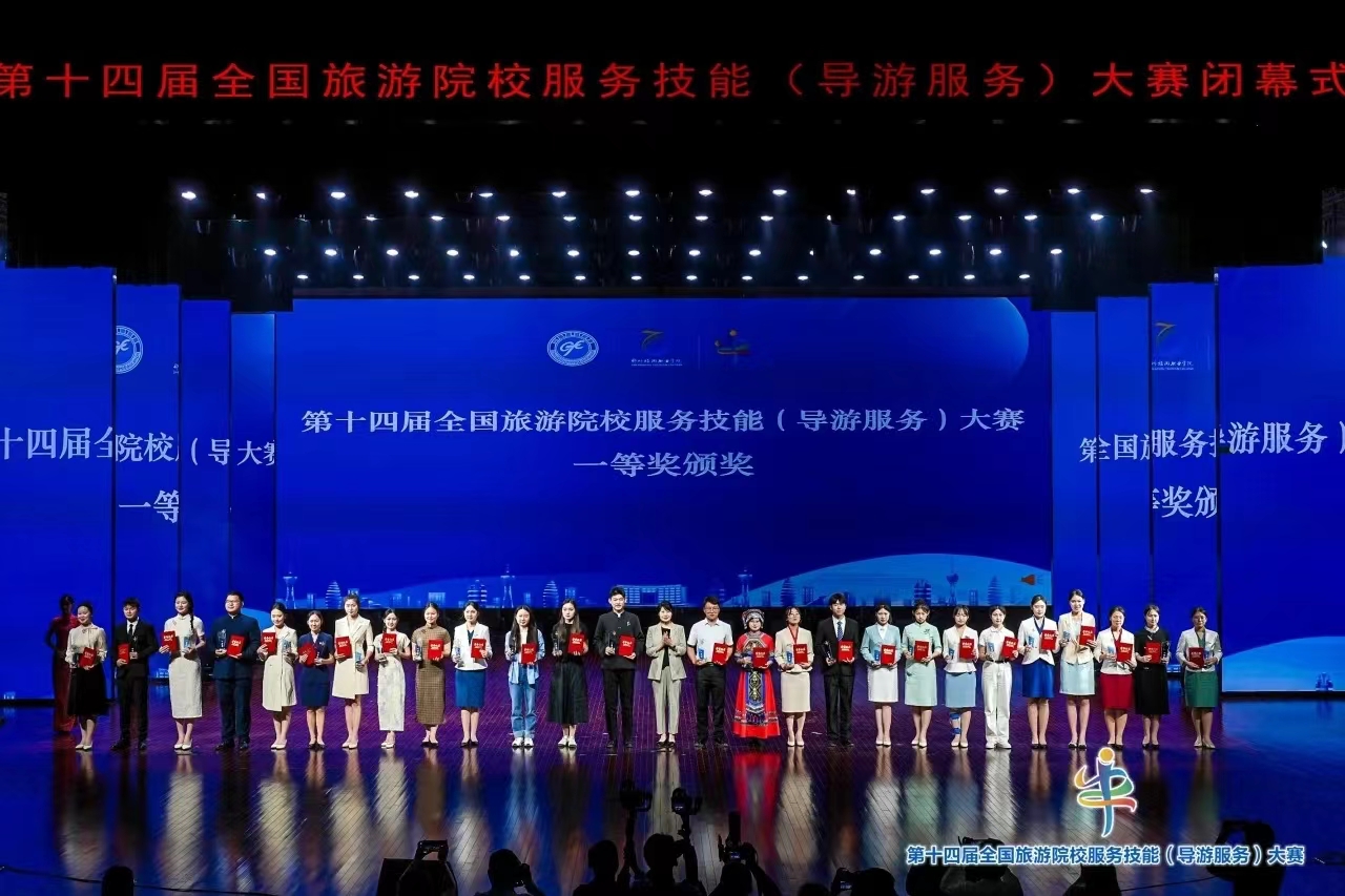 第十四届全国旅游院校服务技能(导游服务)大赛,由文化和旅游部市场管理司、中国旅游协会指导,中国旅游协会旅游教育分会主办,郑州旅游职业公司承办。5月23日至27日,来自全国30个省(自治区、直辖市)303所高等院校和中职公司883名选手,齐聚郑州,共襄盛举。比赛设普通话导游服务和英语导游服务两个项目,每个项目,由理论考核、导游讲解、专题讲解、才艺展示四个部分组成,全面考察员工的综合能力。经过激烈角逐,2023旅游管理专升本班员工朱一豪荣获中文组一等奖,并以优异表现位列中文组得分第十名;2023级酒店管理专升本班员工吴照文获得英语组一等奖,实现了太阳成集团tyc122cc在英语组一等奖上零的突破;2023级旅游管理专升本班员工朱优、费凡分别荣获中文组和英文组二等奖。太阳成集团tyc122cc以团体总分第十三名的成绩荣获团体奖,创造了旅游管理专业自参赛以来的最好成绩。