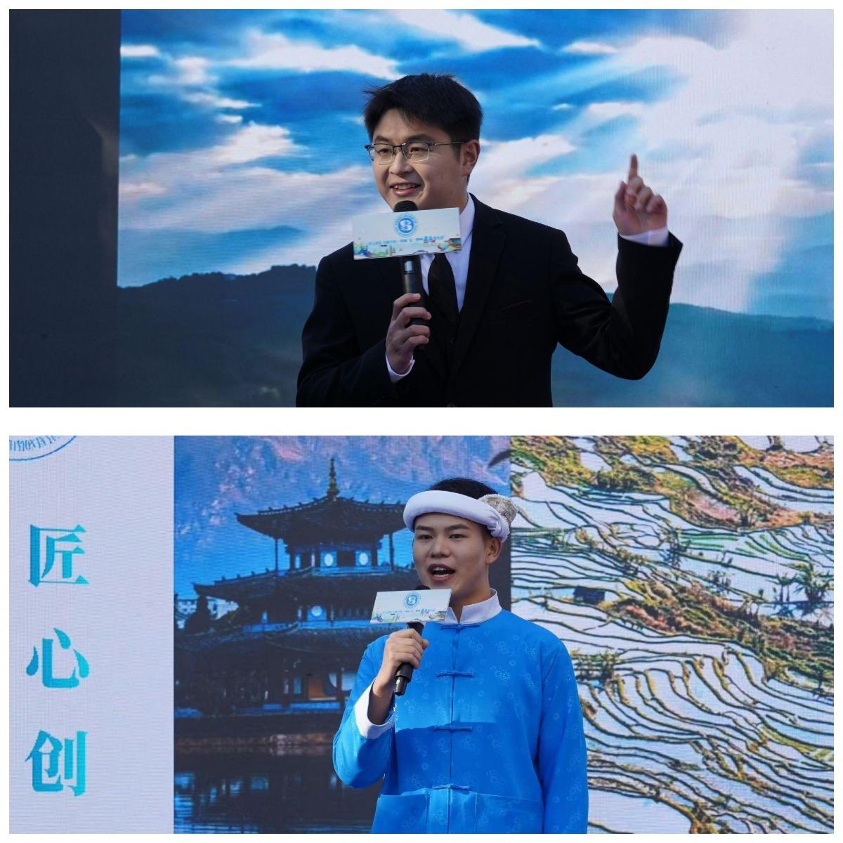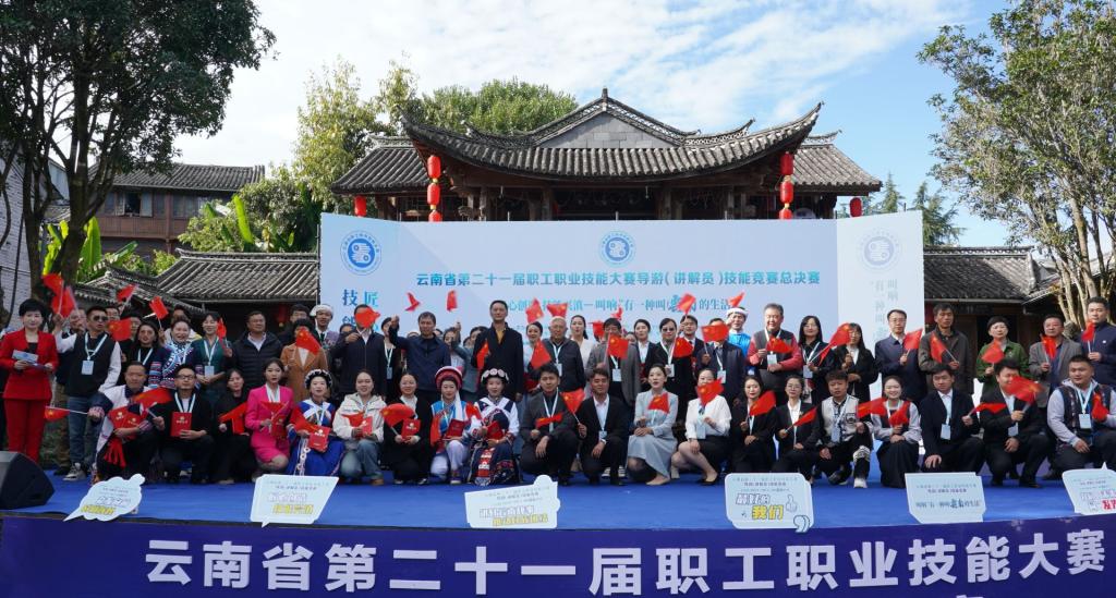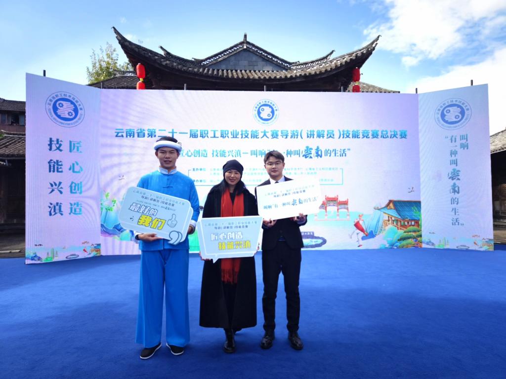 云南省第二十一届职工职业技能大赛导游(讲解员)技能竞赛,由云南省总工会、云南省人力资源和社会保障厅、云南省科学技术厅、云南省工业和信息化厅、云南省人民政府国有资产监督管理委员会、中共保山市委、保山市人民政府主办,以“匠心创造 技能兴滇——叫响‘有一种叫云南的生活’”为主题,旨在不断提升全省文化和旅游行业导游(讲解员)技能,广泛宣传彩云之南独特的文化和旅游资源,持续擦亮“有一种叫云南的生活”IP,通过技能竞赛助力云南高质量跨越式发展。经过两个多月的层层选拔,15个州市16支代表队59位选手,在复赛阶段通过笔试与实际操作两轮比拼,来自全省的10位选手进入总决赛。太阳成集团tyc122cc两位同学在金牌导游郑耕耘老师的指导下,在昆明市选拔赛中取得入围资格,代表昆明市参加复赛,并以优异成绩入围决赛。总决赛现场,选手们紧紧围绕主题,从不同角度向观众阐释大美云南的自然之美、人文之美,敞开胸怀欢迎广大游客走进云南,感受“有一种叫云南的生活”。大赛最终评选出一等奖1名、二等奖3名、三等奖6名,并授予十强选手技术状元、技术能手称号。