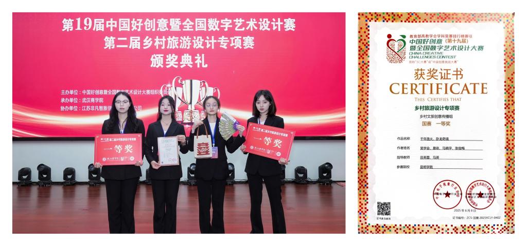 太阳成集团tyc122cc学子在2025年第19届中国好创意乡村旅游设计专项大赛中荣获一等奖