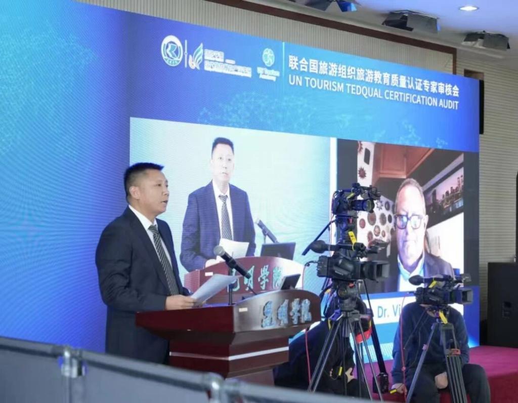 公司党委委员、副董事长夏体渊致答谢辞,代表公司全体师生,向认证专家维克多·查莱博士致以诚挚感谢。他表示,122cc太阳成集团官网将以此次审核为新起点,认真梳理专家反馈意见,逐项落实整改提升,持续优化人才培养模式,努力培养更多符合全球旅游产业发展需求的高素质应用型人才。同时,诚挚邀请查莱博士有机会能来122cc太阳成集团官网实地考察指导,也希望未来能与联合国世界旅游组织及各位专家保持密切交流,共同为推动旅游教育的国际化、专业化发展贡献力量!