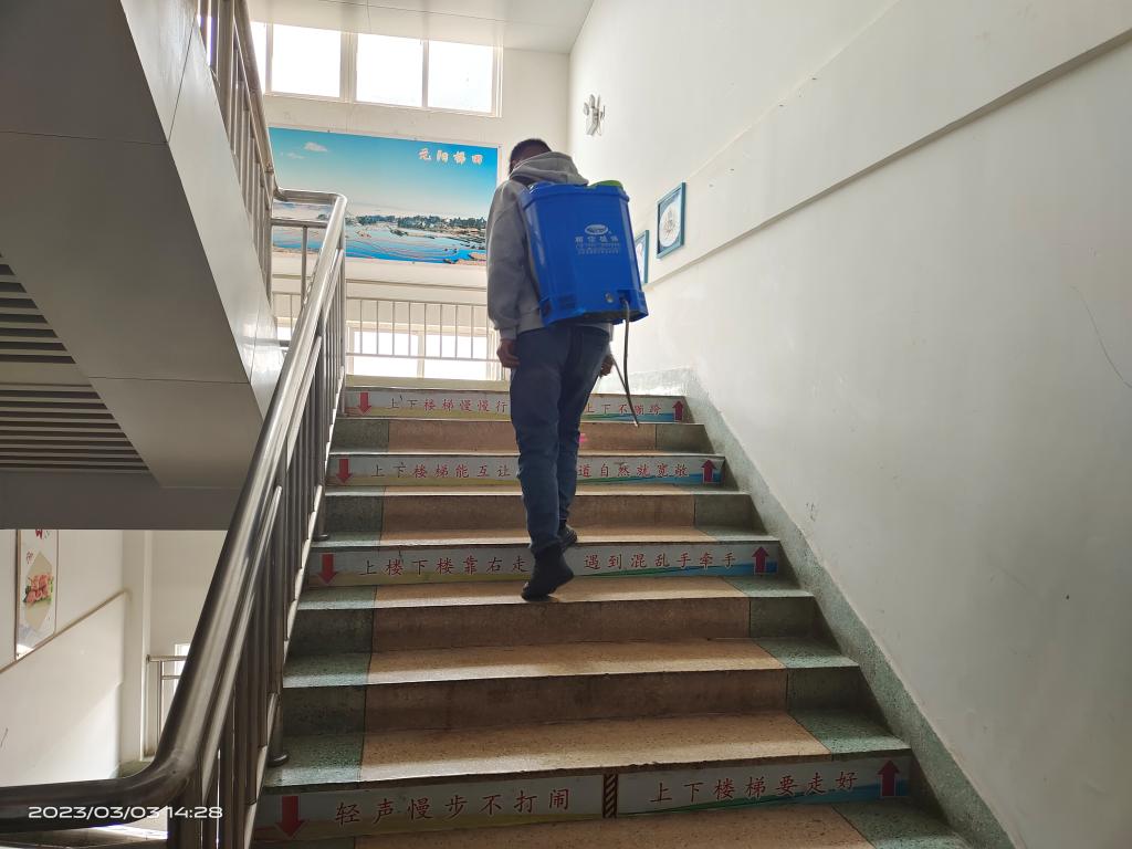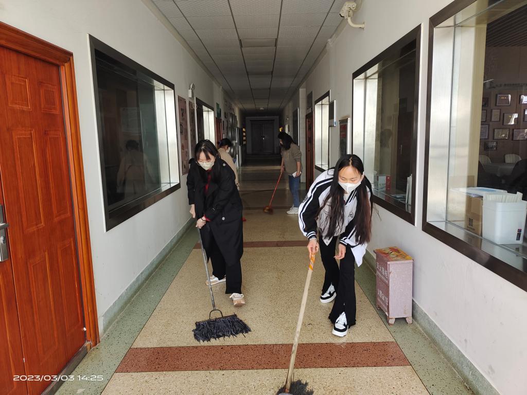 员工第一党支部党员采用主题党日活动形式,到烹饪楼,打扫公共卫生,组织疫情消杀,开展文明实践志愿服务活动。