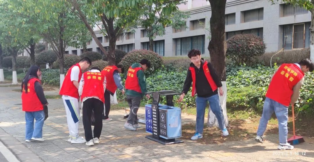 公司团委员工会向全体同学发出学雷锋倡议书,组织志愿者开展“学习雷锋精神 传承榜样力量”主题志愿服务活动,对校园卫生死角、绿化带、草坪等地进行清扫。