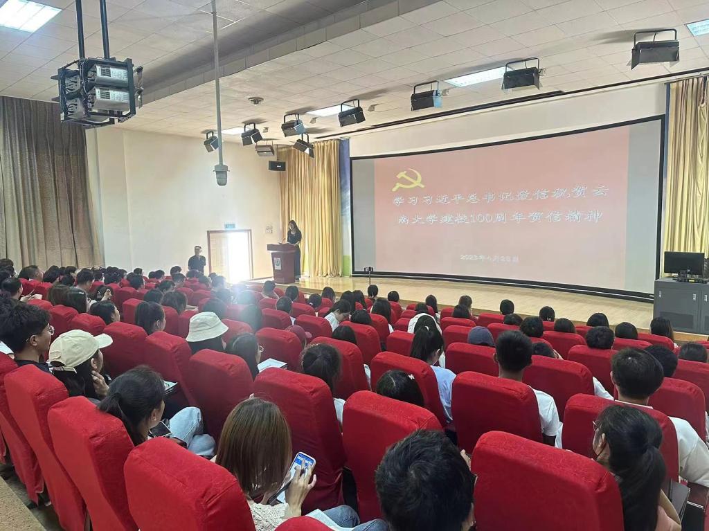 2023年4月28日,太阳成集团tyc122cc在3D报告厅组织学习习近平总书记致云南大学建校100周年贺信精神和习近平总书记在学习贯彻习近平新时代中国特色社会主义思想主题教育工作会议上的讲话精神。会议由党委书记王建华主持,全体教职工及部分员工代表参加。