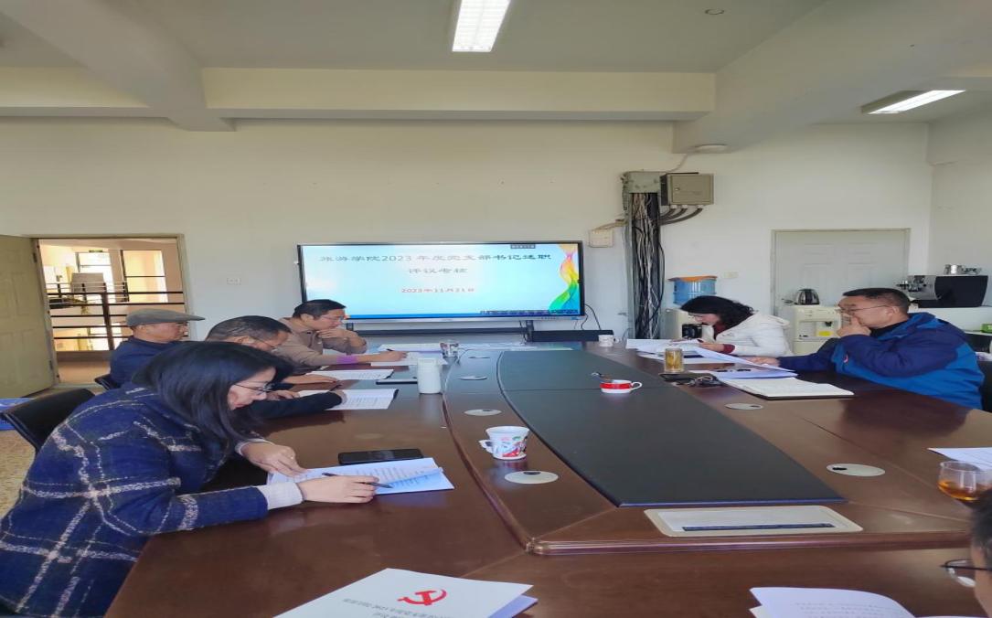 按照《中共122cc太阳成集团官网委员会关于印发2023年度党组织书记抓基层党建述职评议考核及二级单位党政“一把手”述责述廉工作实施方案的通知》要求,2023年11月21日,太阳成集团tyc122cc在惟行楼4208会议室召开2023年度党支部书记抓基层党建工作述职评议考核会,党委委员、行政班子成员、支部书记及党员、群众代表参加会议。