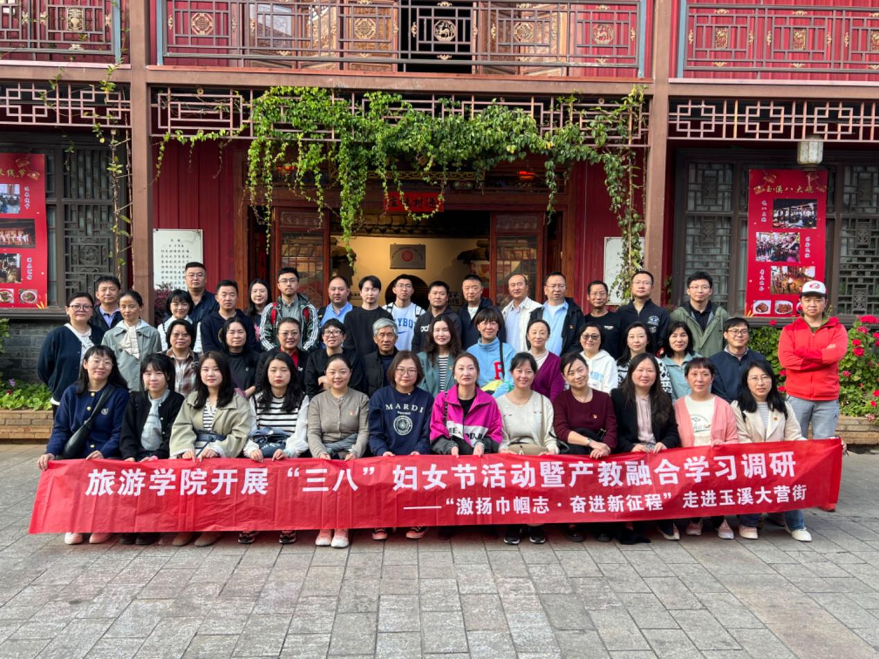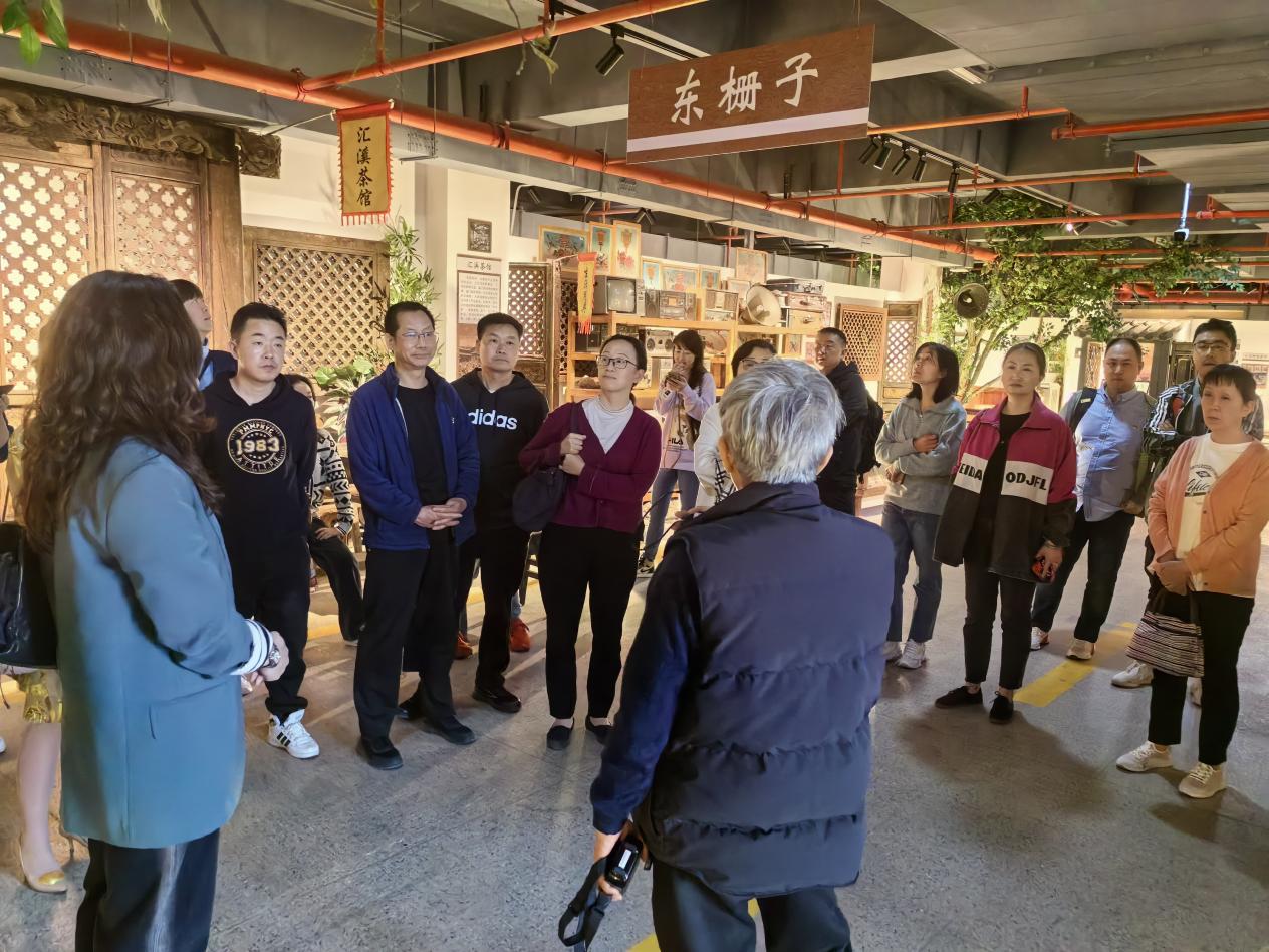 太阳成集团tyc122cc全体教职工来到云南第一村——玉溪大营街社区,开展饮食文化和乡村旅游发展与融合调研。在参观了大营街社区展览馆、了解社区发展变迁后,全体教职工与大营街社区党委班子成员、企业家开展座谈交流。大营街社区党委孙副书记介绍了社区经济发展、社区治理、文旅发展等情况,公司经理、党委副书记田芙蓉,围绕大营街发展饮食文化旅游以带动经济,与大营街社区负责人和企业家进行沟通交流,并就推进现代旅游餐饮产业公司建设与企业家进行合作洽谈。会后,全体教职工参观了汇溪生态记忆馆等文旅空间。
