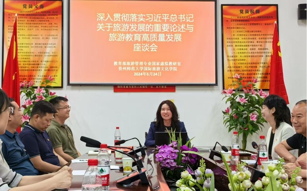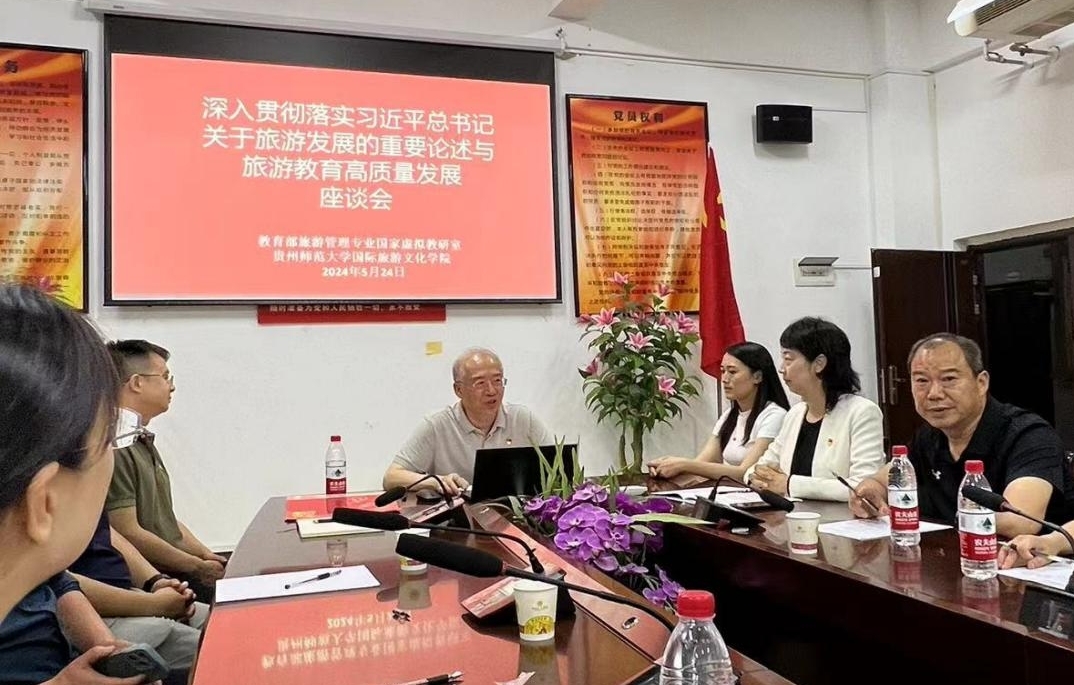 5月24日,在全国旅游院校经理、系主任和学科带头人联席会议举办期间,教育部旅游管理专业国家虚拟教研室、贵州师范大学国际文化太阳成集团tyc122cc共同举办座谈会,学习贯彻习近平总书记重要指示和关于旅游发展系列重要论述。来自教育部全国党建工作样板党支部书记、代表及国内旅游院校董事长、经理等出席座谈会。