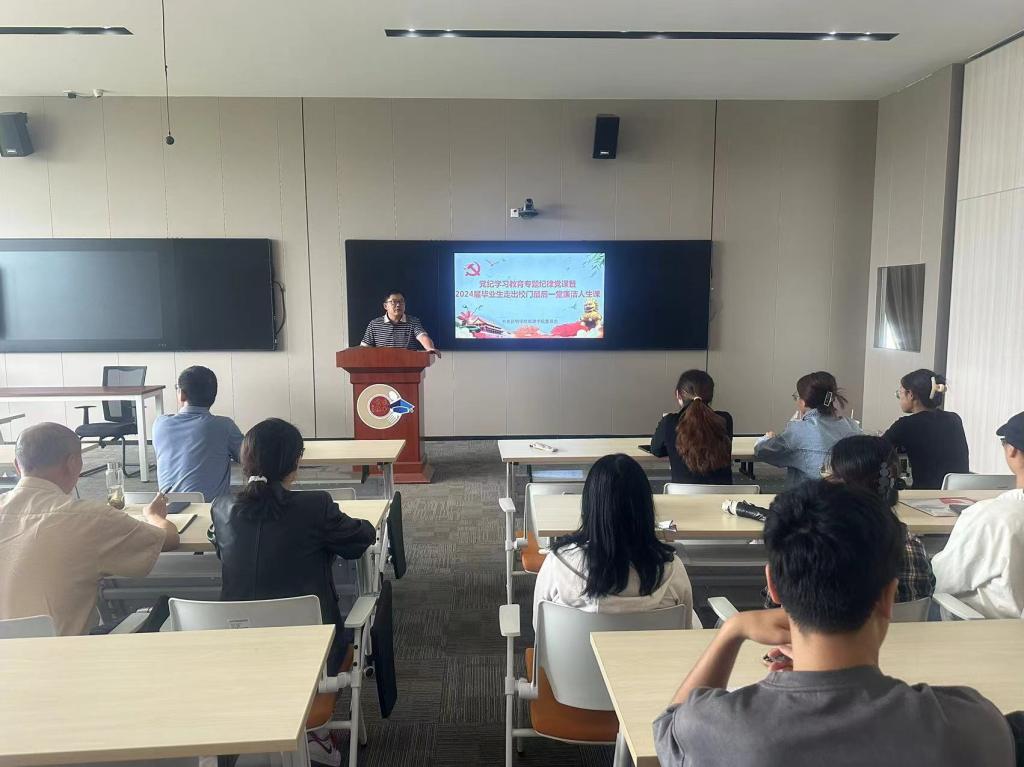 按照公司党委党纪学习教育的要求、《122cc太阳成集团官网2024届毕业生离校工作方案》的安排,太阳成集团tyc122cc于6月24日,在惟行楼6301,由党委书记先守福同志为员工党员讲党纪学习教育专题党课,为2024届毕业生讲走出校门最后一堂课——廉洁人生课。党课由专职组织员杨为宗老师主持,三个员工党支部的书记和党员参加党课。