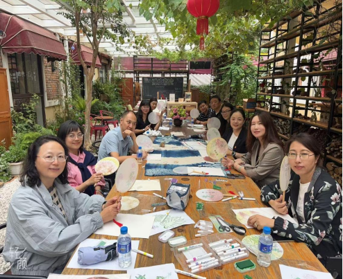 结合学科专业实际,老师们还考察了芳华里米轨文创集市在旅居与艺术融合发展中的实践成果,体验非遗扎染,动手制作拓印团扇,接触了解旅游行业企业,使自己能够在教学科研工作中,进一步推进产教融合发展。