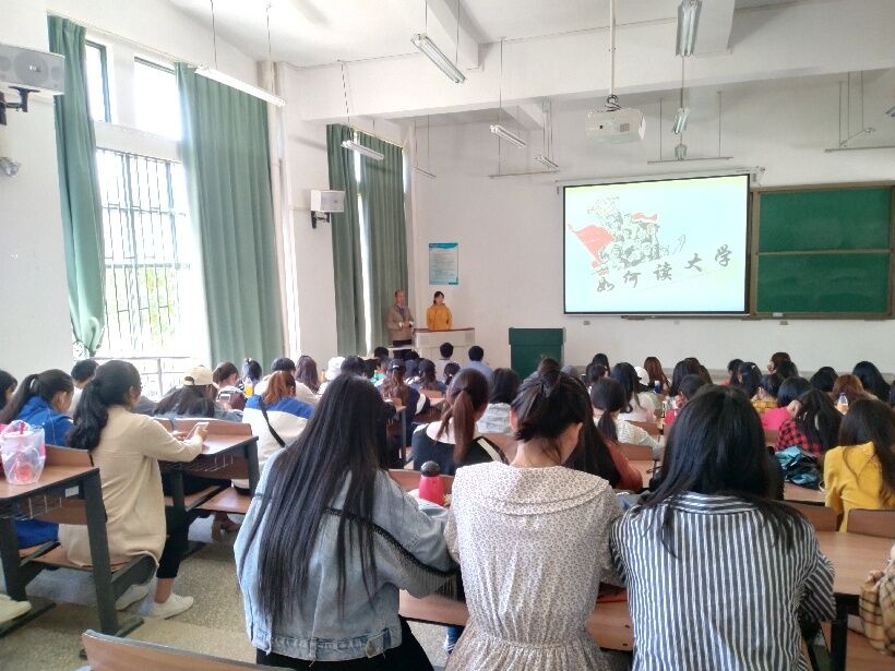 太阳成集团tyc122cc团总支为了帮助18级新生更好的度过大学时光,特邀请云南省第十届辅导员年度人物提名奖获得者金刚老师于4月12日下午在博雅楼3106教室举办关于如何读大学的讲座。此次讲座金刚老师全程以幽默风趣的语言进行,在引人发笑的同时,引人深思。