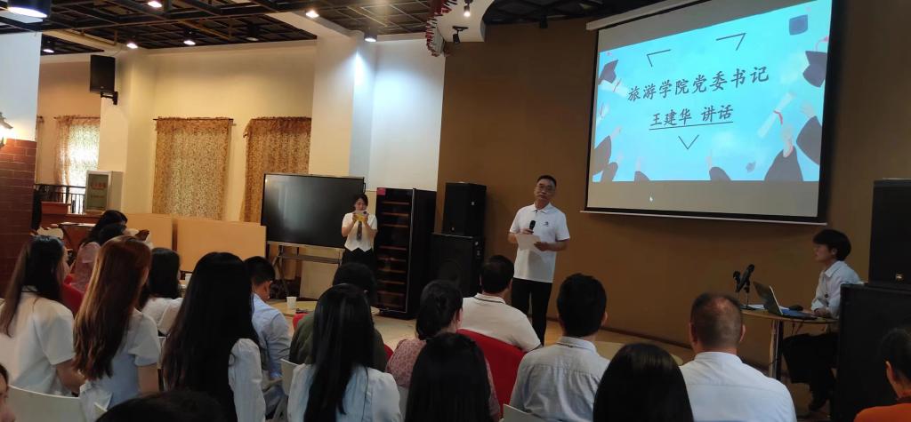 党委书记王建华首先代表公司党政领导班子和全体教职工向509名毕业生表示热烈祝贺!并为毕业生送上毕业赠言:一是有梦想,做一个不甘平庸的人,希望同学们求真探寻,奋斗不息;二是有底线,做一个坚守本真的人,希望同学们扣好人生的第一粒扣子,在前进道路上坚持自我修炼、自我约束、自我塑造;三是有涵养,做一个懂怜悯知感恩的人,希望同学们用感恩之心,回报父母、回报社会,成为有思想、能担当、会感恩的人!