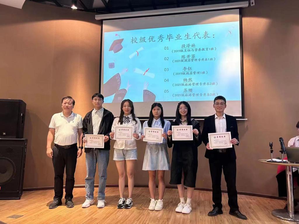 2019级酒店管理1班孙显燕代表毕业生发言,回忆大学四年美好时光,预祝公司明天更美好,事业发展蒸蒸日上。