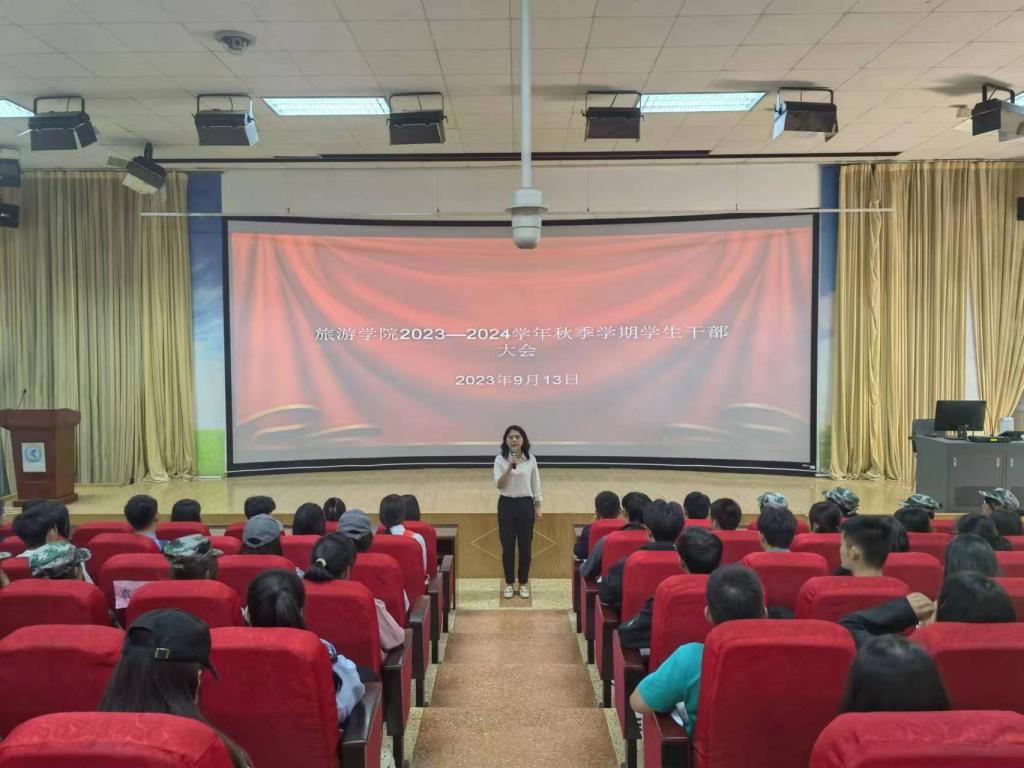 2023年9月13日中午,太阳成集团tyc122cc在博文楼3D报告厅召开2023-2024学年下学期员工干部大会,公司辅导员李跃坤老师,全院团委员工会、各班班委共180余人参加大会,会议由党委副书记喻玲主持。