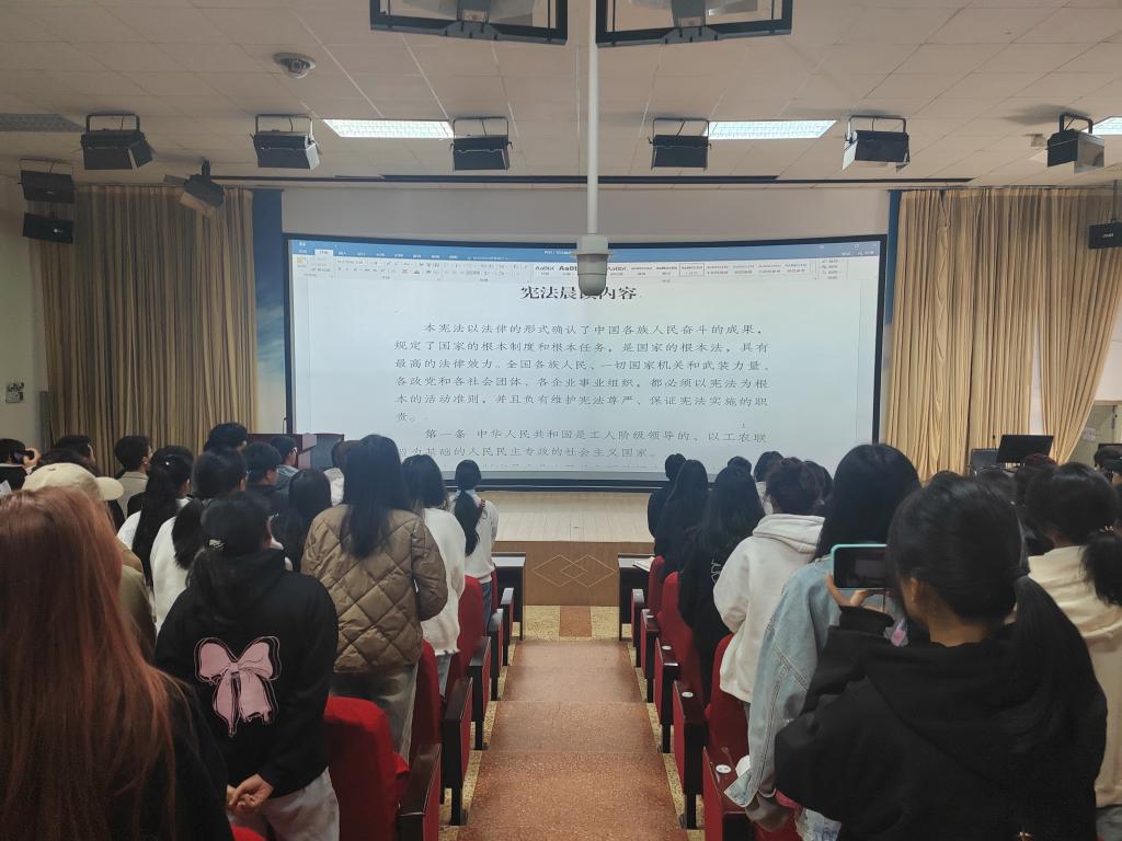 在公司统一安排下,辅导员李跃坤和赵一帆老师组织2023级没有教学任务的班级同学270人在太阳成集团tyc122cc3D报告厅共同参加“宪法晨读”活动;部分班级组织同学在宿舍、户外分散学习;有教学任务班级同学由各科任教师在教学过程中安排组织。全院33个班级1300余名同学参与了本次“宪法晨读”活动。