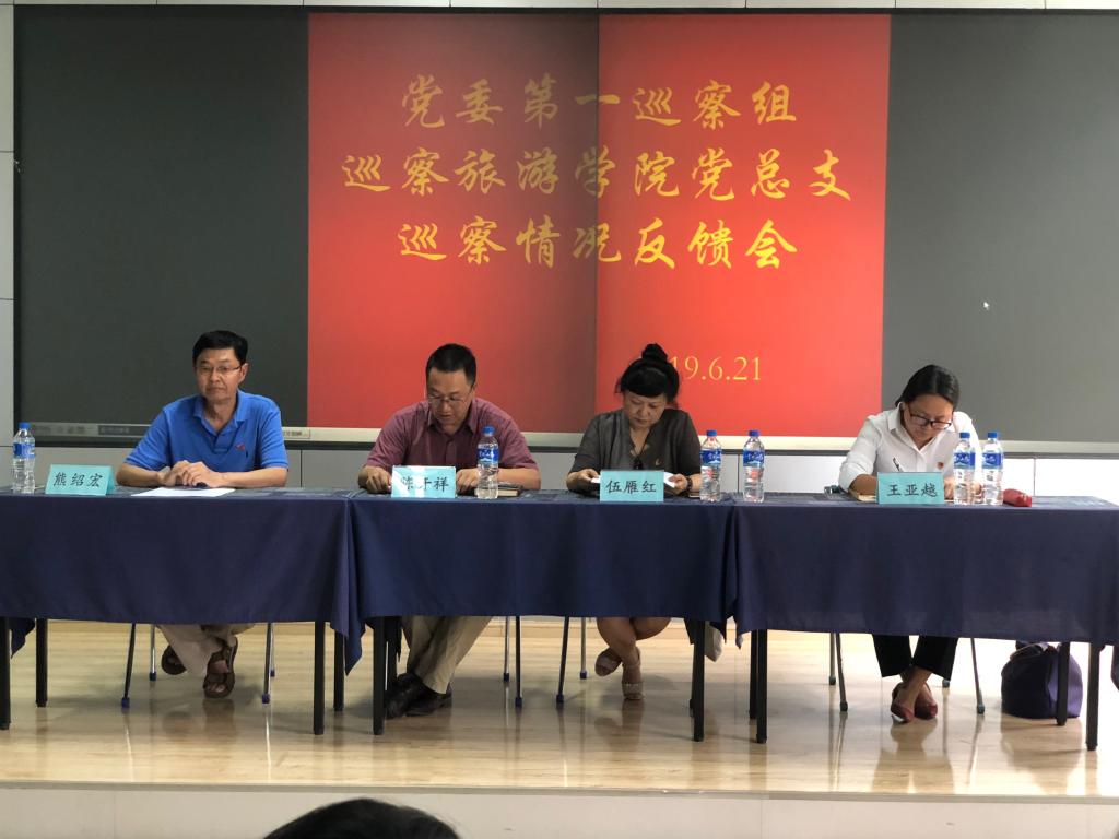 2019年6月21日下午,公司党委第一轮巡察第一巡察组对旅游公司党总支进行常规巡察情况意见反馈会在惟行楼1105举行。太阳成集团tyc122cc领导班子及全体教职工参加会议。出席反馈会的还有122cc太阳成集团官网纪委副书记、巡察办公室主任陈开祥,审计处副处长、第一巡察组组长伍雁红,继续教育公司副经理、第一巡察组副组长王亚越。旅游公司党总支书记熊绍宏主持会议。