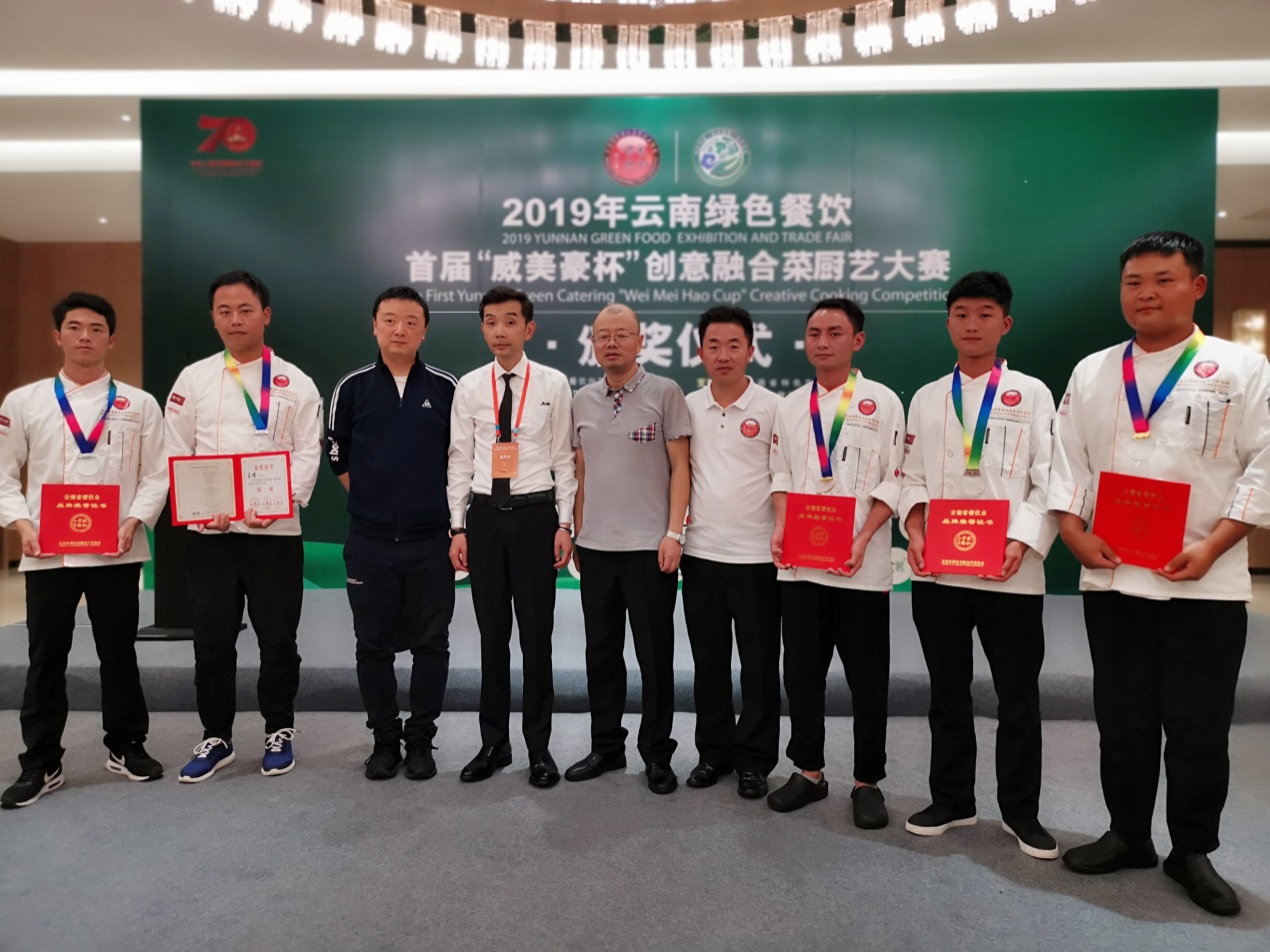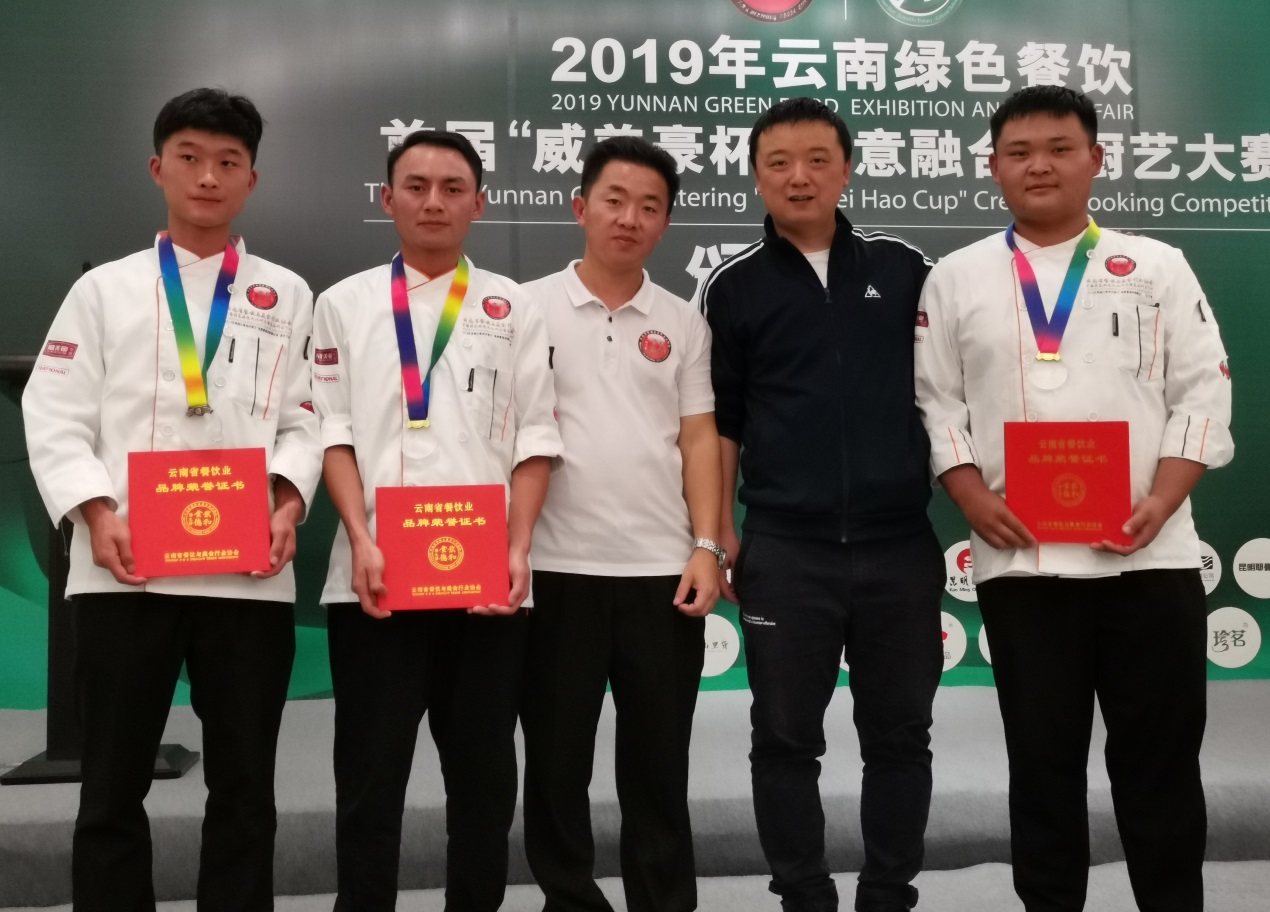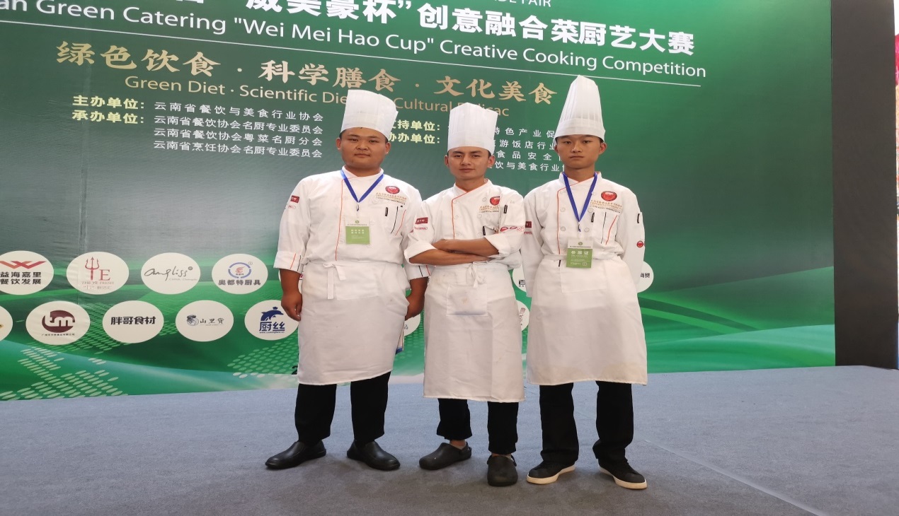 9月6日,在滇池会展中心举办的2019云南绿色餐饮“创意融合菜”厨艺大赛中,太阳成集团tyc122cc选派的汪家辉、陈达标和陈星沛三位同学在王勇、刘福灿两位老师的悉心指导下,从200多名参赛选手中脱颖而出,斩获两金、一铜的优异成绩。