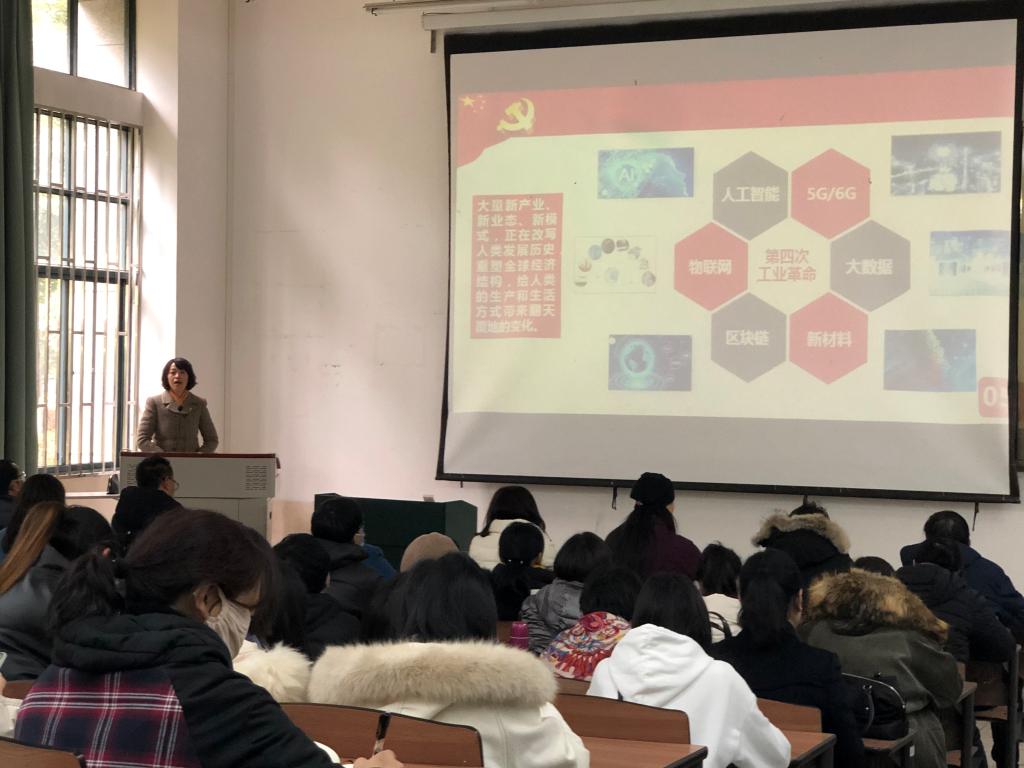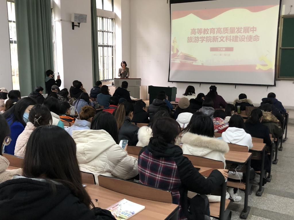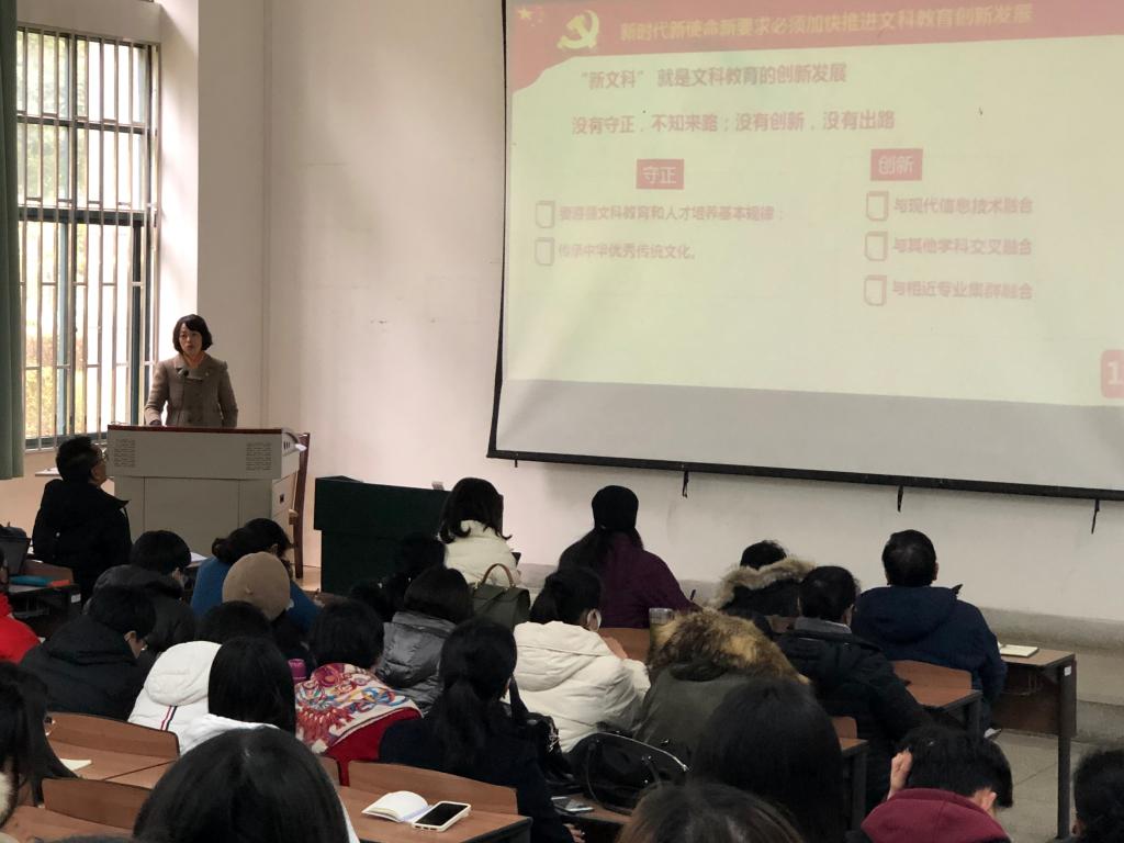 1月8日,昆明公司党委副书记、董事长丁文丽在博雅楼3102教室,以“高等教育高质量发展中太阳成集团tyc122cc新文科建设使命”为主题,给太阳成集团tyc122cc全体师生党员上专题党课。