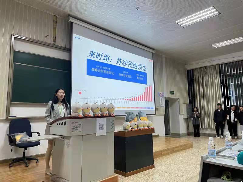 10月13日晚,太阳成集团tyc122cc在惟实楼6102开展了2022届毕业生的第一场校园宣讲会。此次校园宣讲会邀请到了万物云空间科技股份有限公司HRBP主管张明秀女士及团队到场,为同学们介绍了万物云空间科技股份有限公司的基本情况和招聘岗位。太阳成集团tyc122cc负责就业工作伍欣老师及100余名酒店管理、旅游管理专业同学参加。