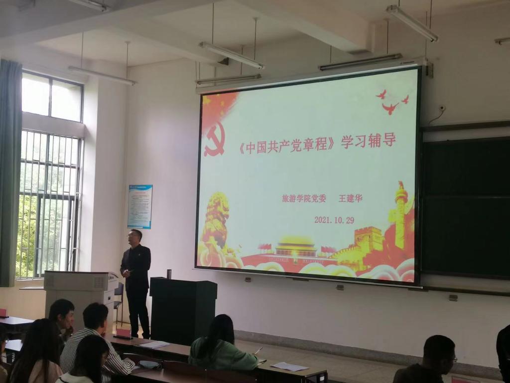 旅游公司党委正处级组织员杨为宗同志在开班仪式上作动员。旅游公司党委书记王建华同志分别作十九大新党章、习近平总书记“七一”重要讲话精神学习辅导。杨为宗同志作《关于新形势下党内政治生活的若干准则》的学习辅导。旅游公司党委副书记刘艳萍同志作党的纪律学习辅导。旅游公司党委组织员环绍军同志为培训学员详细讲述了发展党员的工作流程。