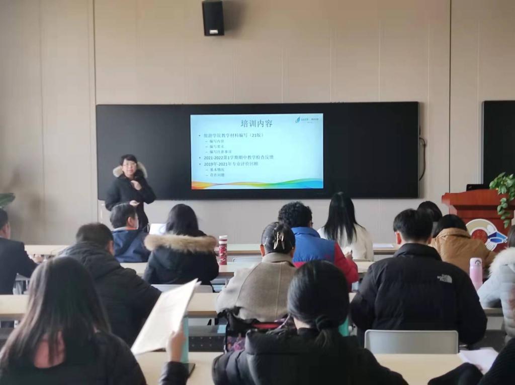 2021年12月24日,太阳成集团tyc122cc在惟行楼6301开展了2021版太阳成集团tyc122cc教学资料编写指导培训。本次培训由杨韫副经理和孙志强副经理主持,全体教师参与培训。