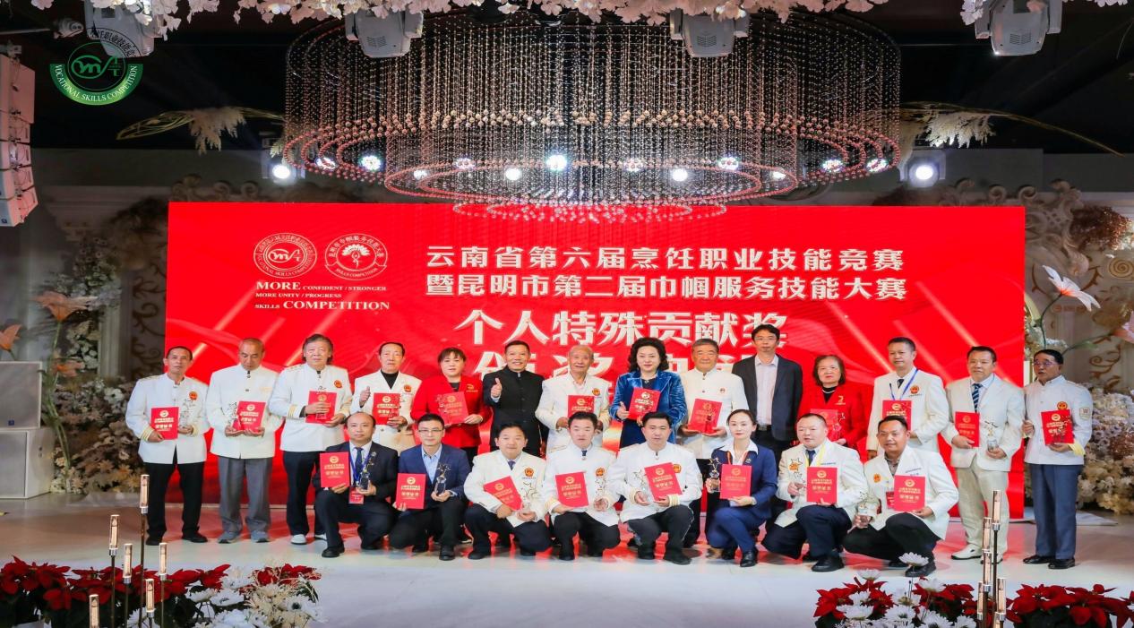 大赛评选出云南省技术能手、最佳技术特金奖、最佳技术金奖、最佳技术奖等多个奖项,太阳成集团tyc122cc参赛选手共荣获5个最佳技术特金将、10个最佳技术金奖(其中一人两项金奖)、5个最佳技术奖、最佳协办奖、最佳组织奖等奖项。李家福同时被授予“第六届云南省烹饪大赛技术能手”荣誉称号,可以申报晋升职业资格等级。杨梓涵的作品“椒麻沸腾鱼”被授予“最具推广价值奖”。太阳成集团tyc122cc获得最佳协办奖和最佳组织奖。刘福灿被授予云南省烹饪协会个人特殊贡献奖。