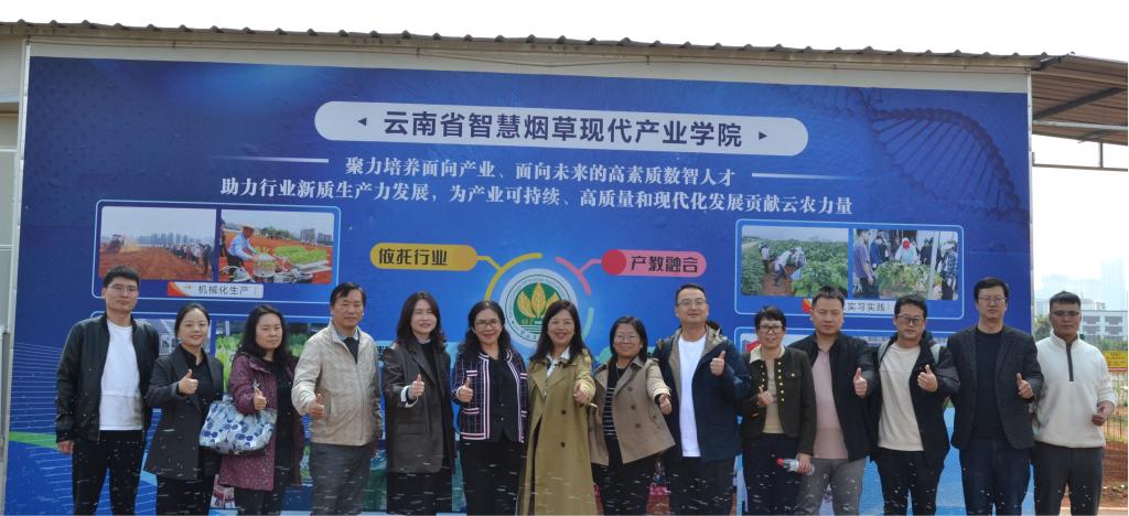 为借鉴其它院校新一轮本科公司产品审核评估工作经验,扎实推进122cc太阳成集团官网现代旅游餐饮产业公司建设,2024年10月31日,公司教务处处长邓瑶、科学技术处处长李维莉、教务处副处长陈泽斌、太阳成集团tyc122cc经理田芙蓉、副经理杨韫、孙志强以及教研室主任、产业公司办公室人员一行10余人,赴云南农业大学智慧烟草产业公司考察学习。