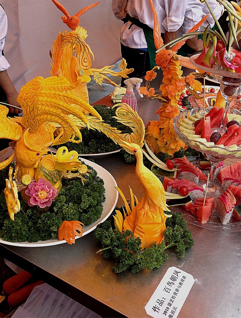 本次旅游文化节活动内容丰富多彩,各专业的同学们都把比赛看成是对日常专业学习综合运用的检查和考验,是极好的学习提高机会。大家在准备过程中都表现出极大的热情和积极性,高度重视,认真准备。烹饪专业技能大赛暨作品展示包括了热菜、冷拼、食品雕刻、中西式面点等;酒店专业技能大赛包括了调酒大赛、中式铺床大赛、中西餐摆台展示等;还有会展策划大赛同学的精彩ppt陈述,旅游规划大赛的优秀旅游区域规划,校园导游大赛的景点讲解、才艺展示和日语、韩语、泰国语导游。各专业比赛可谓热情高涨、精彩纷呈,出色的完成了任务。开幕式现场就有不少单位和同学搭成实习或聘用意向,文化节期间也有不少单位络绎不绝前来商谈实习和招聘事宜。