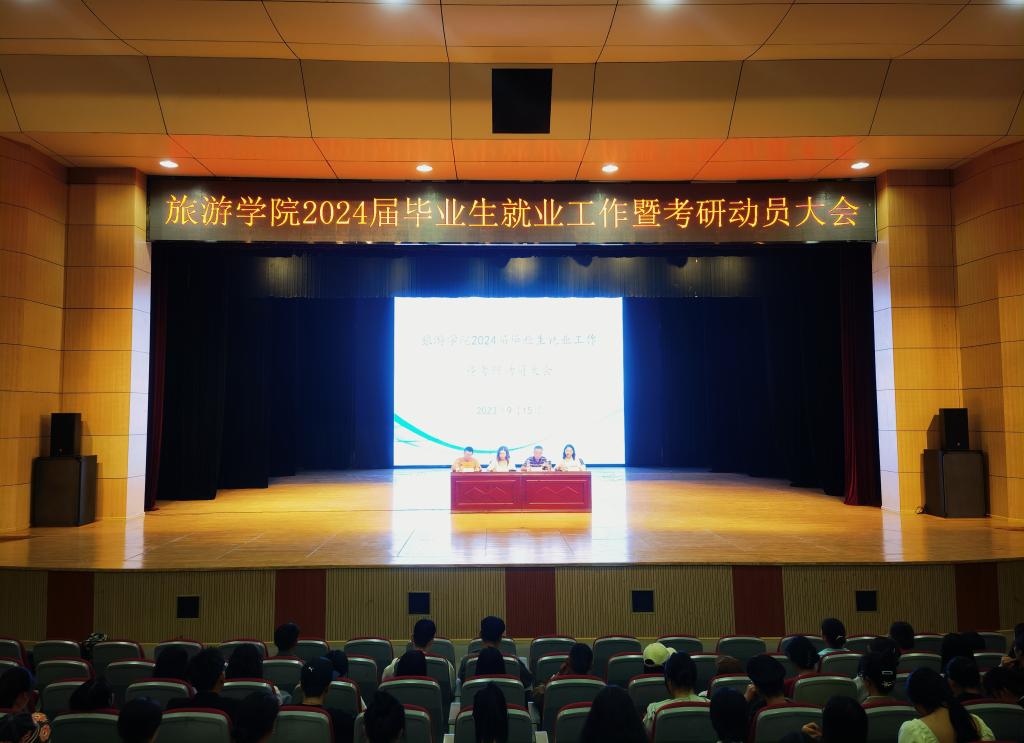 为全面推进2024届毕业生就业工作,引导毕业生正确认识就业形势,树立正确就业观念,提高就业积极性和主动性,9月15日下午,太阳成集团tyc122cc在员工会堂召开2024届毕业生就业工作暨考研动员大会,举办“老员工就业形势与政策解读”专题讲座。旅游公司党委书记王建华、经理田芙蓉、党委副书记喻玲、就业工作教师杨博文出席本次动员会,2024届全体毕业生参加会议。