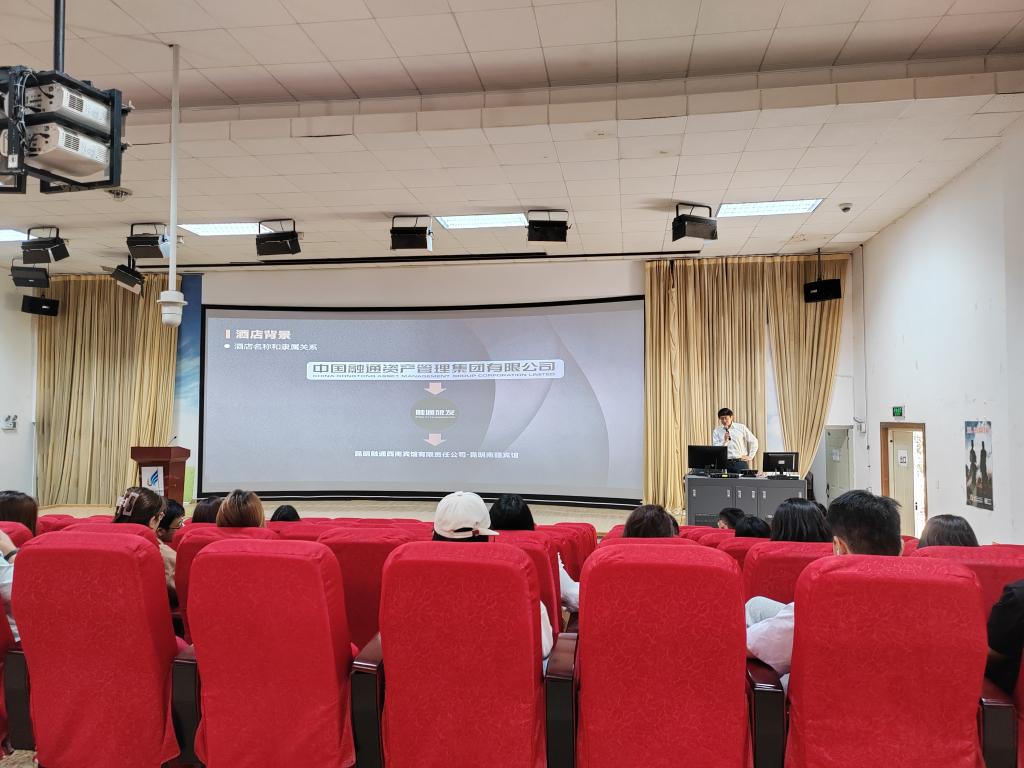 为加强公司与企业交流合作,促进2024届未就业毕业生顺利就业,帮助同学寻找心仪岗位,4月26日下午,公司举办2024届毕业生就业第六次企业招聘宣讲会,邀请昆明融通西南宾馆为同学们做宣讲。
