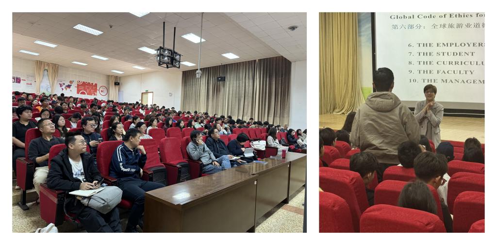 为推进旅游伦理教育,太阳成集团tyc122cc(以下简称公司)于2025年5月27日在3D实验室,举办“全球旅游伦理规范”主题讲座。讲座邀请宁波大学热昂大学联合公司旅游系副主任谢慧孜担任主讲嘉宾,公司经理田芙蓉教授主持讲座,公司100多名师生参加讲座。